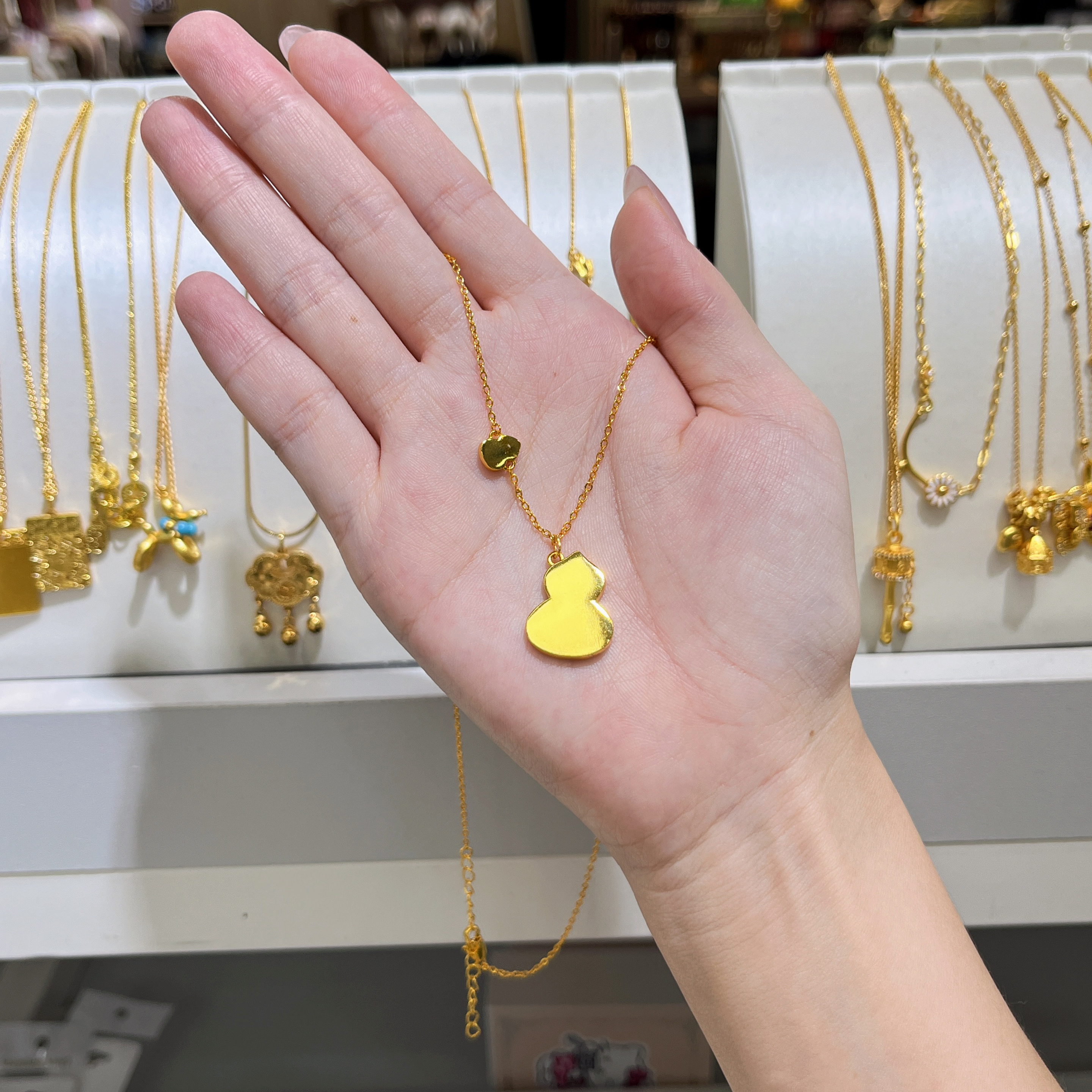 2025新款不掉色双面沙金镶钻红色葫芦项链女国潮风贵气锁骨链颈链