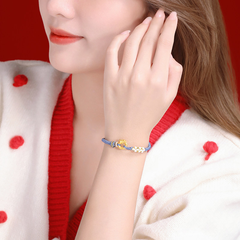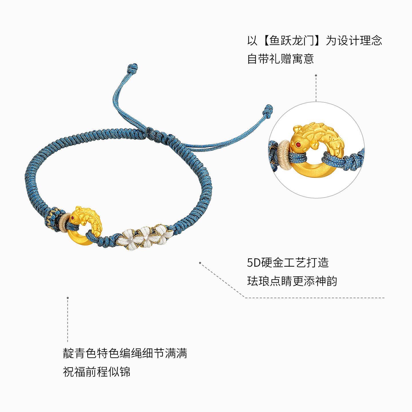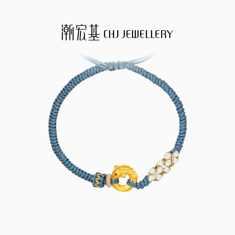 潮宏基考神系列黄金手链串珠足金转运珠5D硬金平安扣礼物