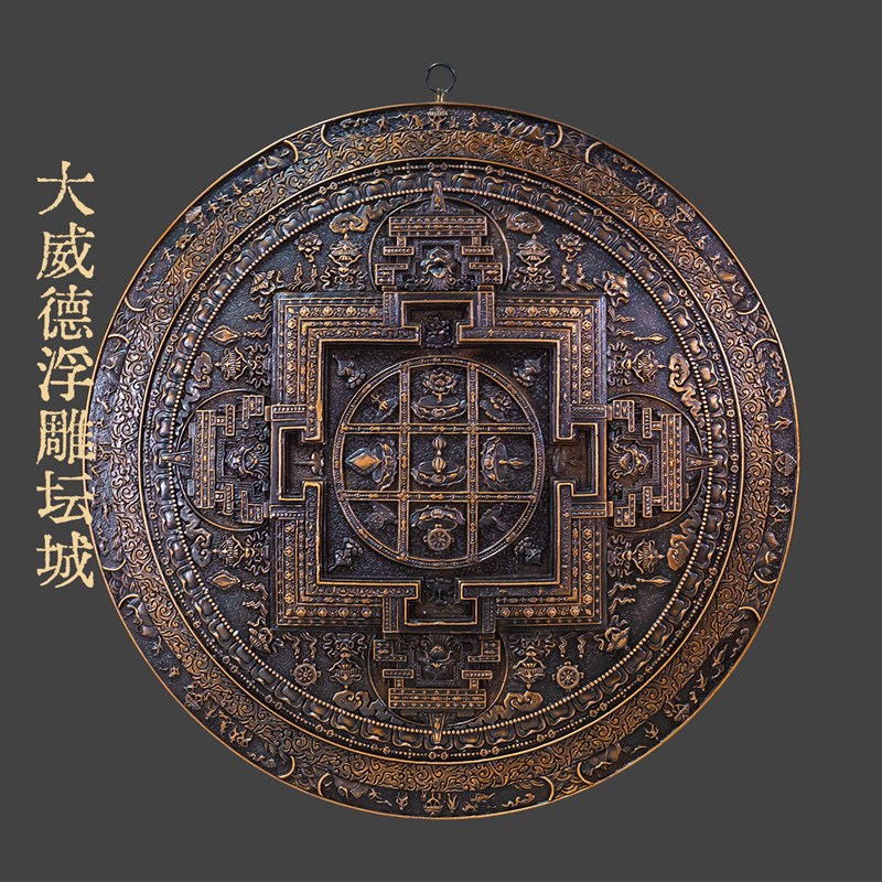 藏式尼泊尔工艺大威德浮雕坛城挂牌精品仿P古紫铜装饰挂件摆件