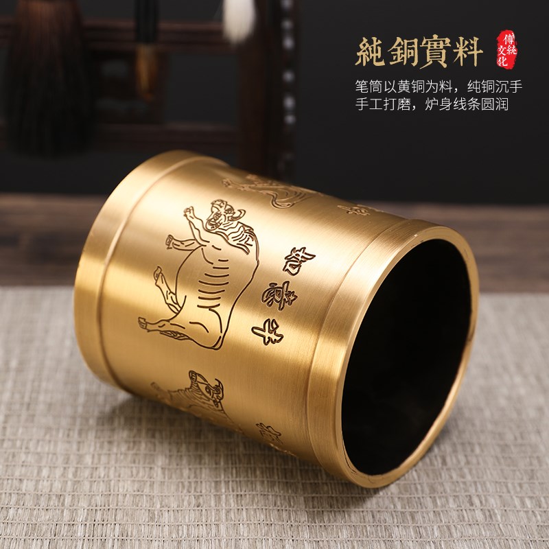 黄铜笔筒文房四宝摆件工艺品书房办公室商务礼品毛笔书法收纳筒