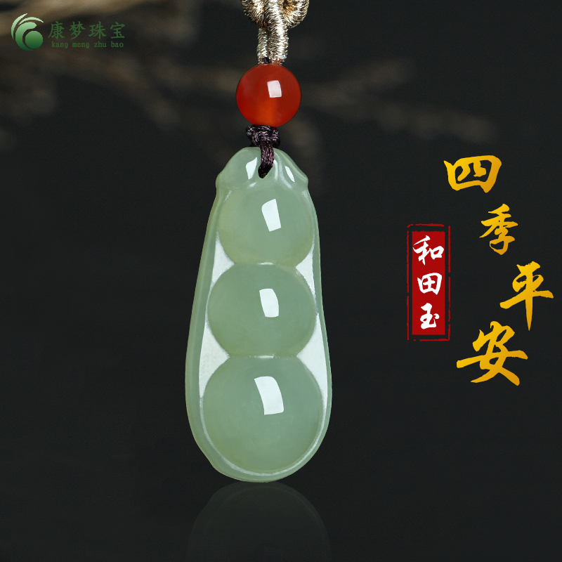 天然和田玉四季豆吊坠福豆挂件男女款玉石饰品节日礼物项坠玉器