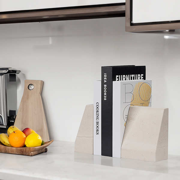 简约大理石书靠天然矿石书档书房桌面客厅装饰几何体软装现代摆件