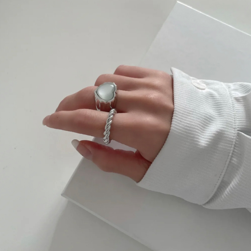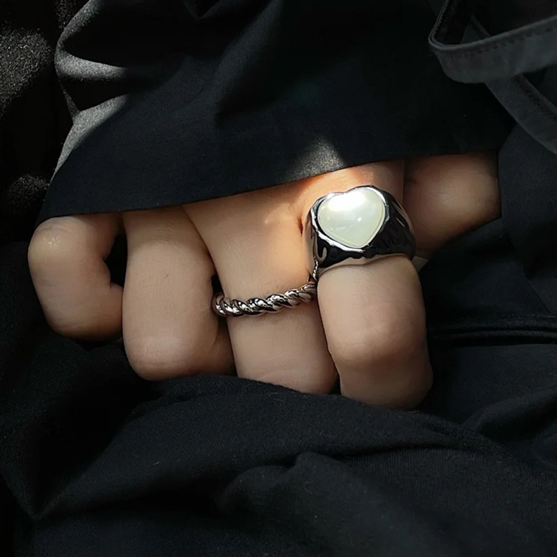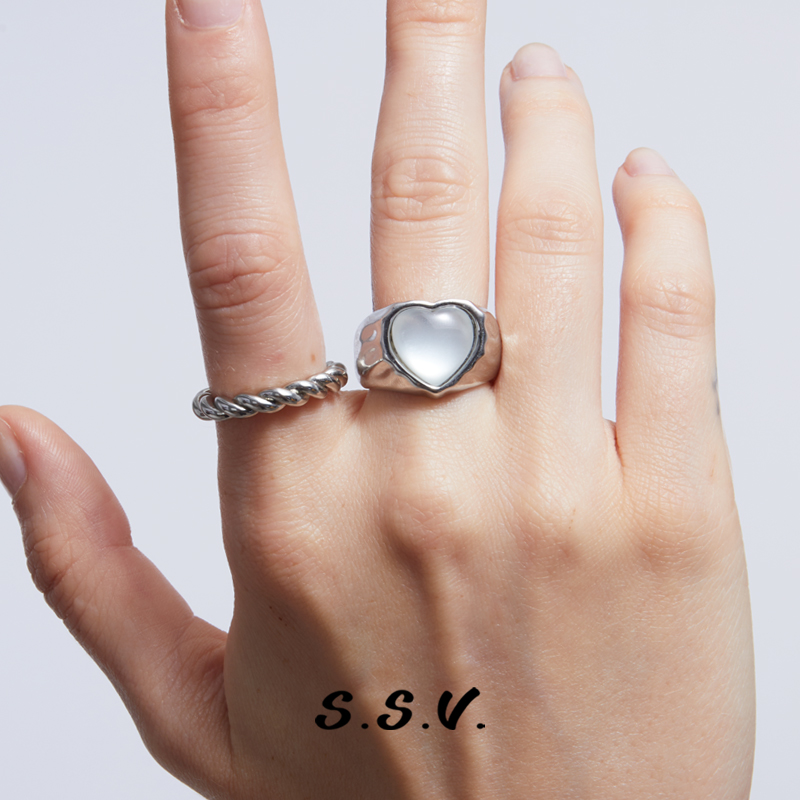 SSV原创设计心形褶皱爱心贝母戒指女轻奢小众个性指环冷淡风ins潮
