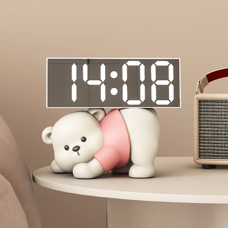 高颜值熊时钟摆件小闹钟创意客厅神器桌面数字电子钟表摆放式台式