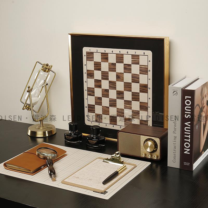 样板间书房装饰摆件样板房书桌软装复古笔记本手稿钢笔放大镜道具