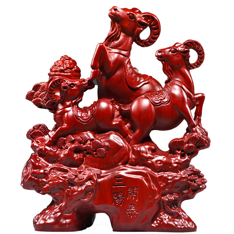 红色三羊开泰摆件实木雕刻三阳开泰十二生肖羊家居玄关补角装饰品