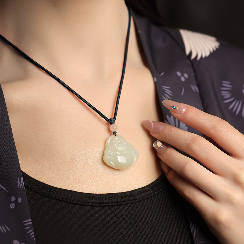 保真天然和田玉弥勒佛吊坠女玉佛头玉坠项链小佛公玉石玉佩挂件