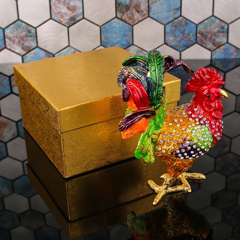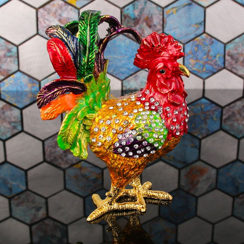 彩釉公鸡摆件鸡鸣富贵吉祥如意招财母鸡合金镶钻首饰盒装饰摆件