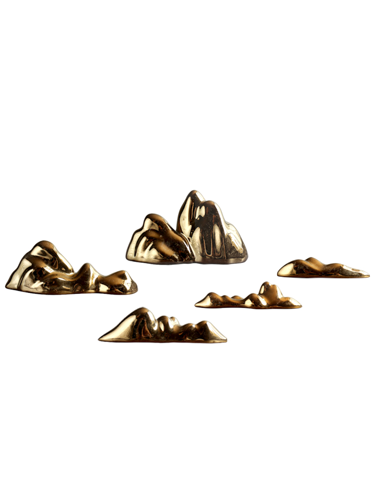 日式禅意假山微景观 景德镇陶瓷枯山水摆件笔架茶席台面创意镀金
