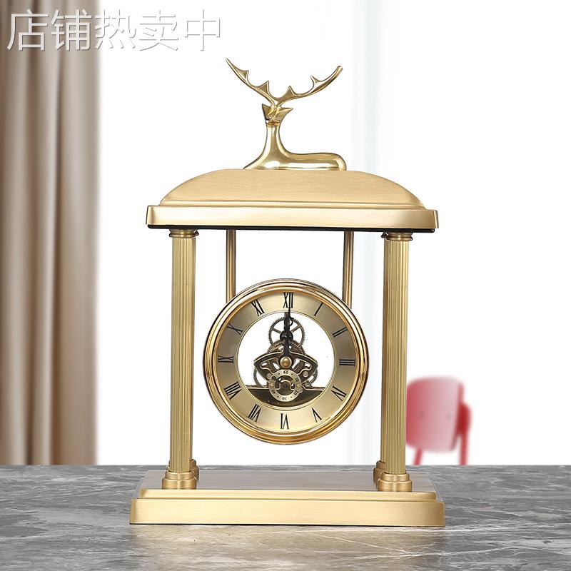 美式黄铜座钟 黄铜轻奢摆件家居客厅餐厅卧室酒店前台软装饰品