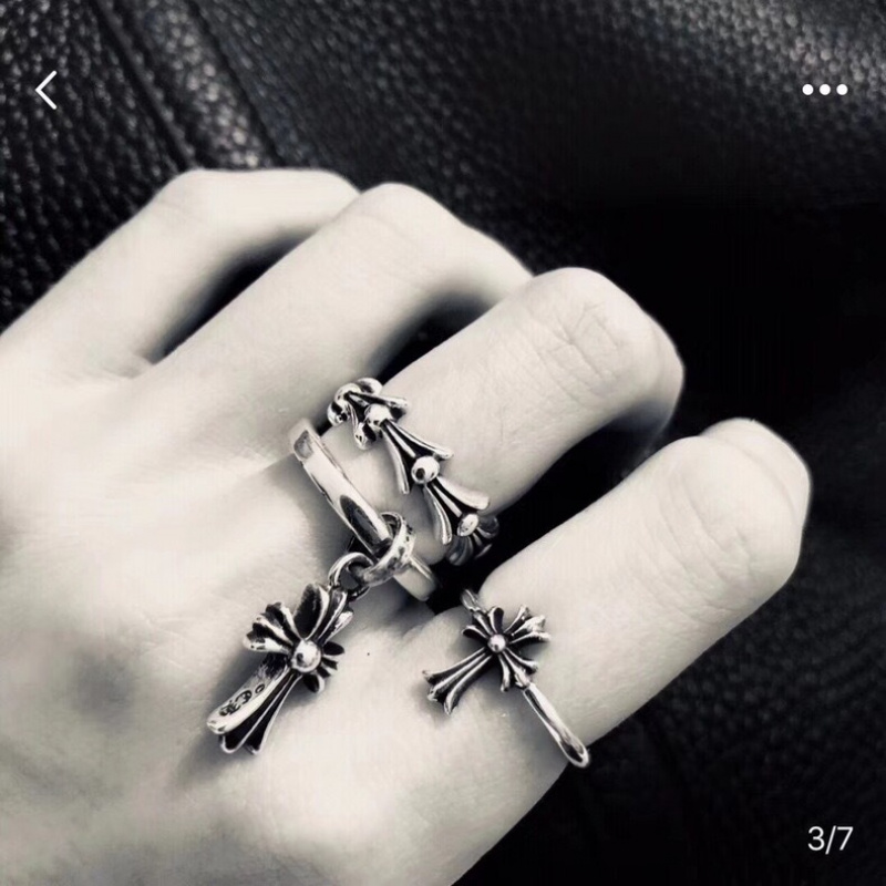 ODEK高级感复古十字架吊坠戒指男女3mm小众高级感经典款中古个性