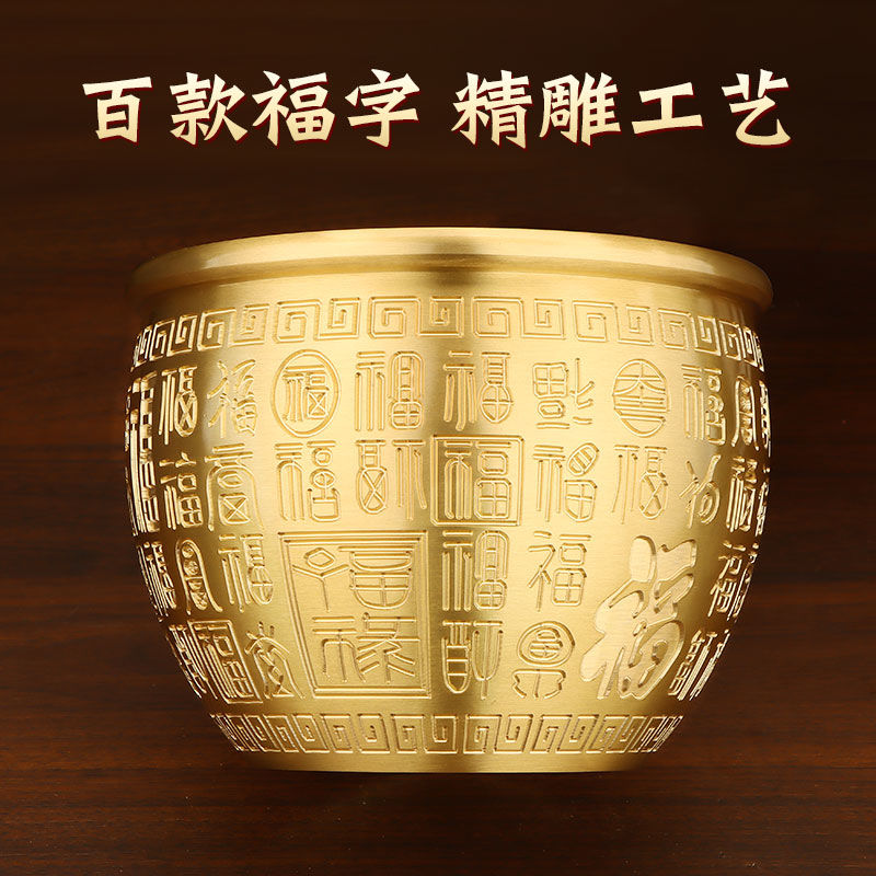 百福铜缸黄铜米缸摆件家居客厅装饰招聚纯财特大号存钱罐聚宝盆