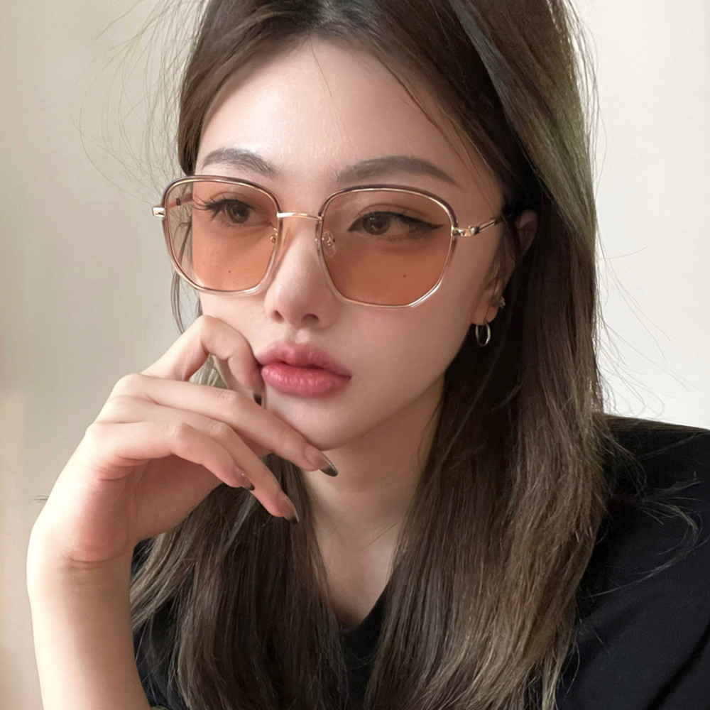 方形茶色圆脸太阳眼镜韩版高级感ins墨镜女大脸显脸小防紫外线潮