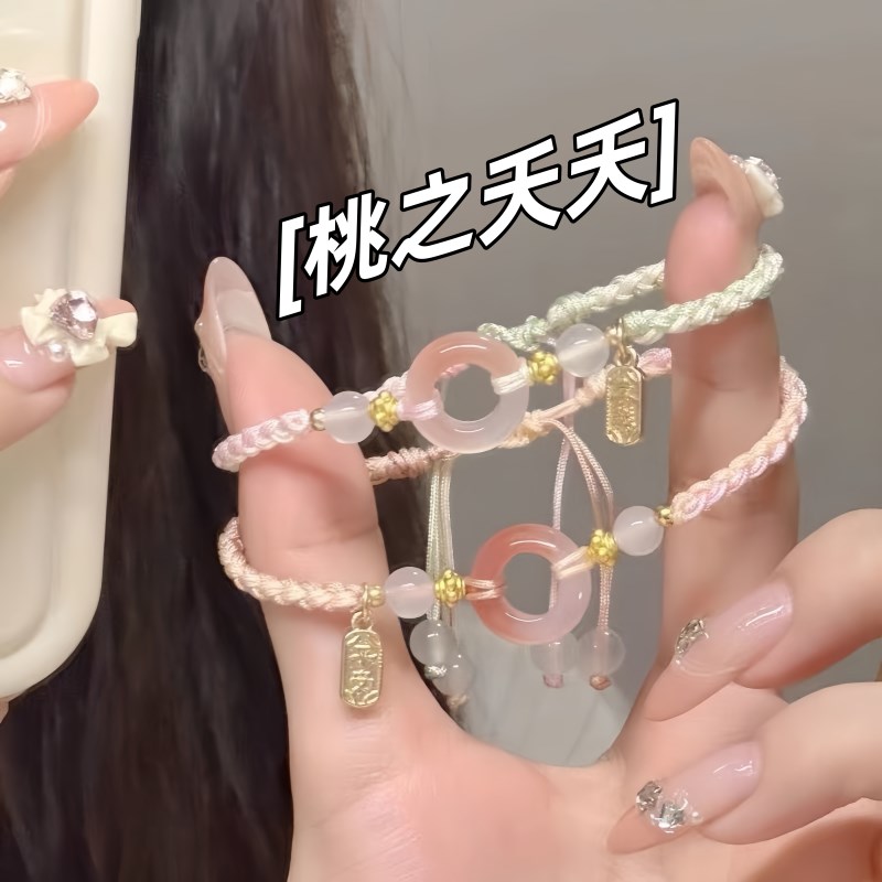现货速发桃之夭夭粉色平安手链少配色高颜值编织喜乐手绳手工编绳