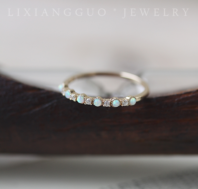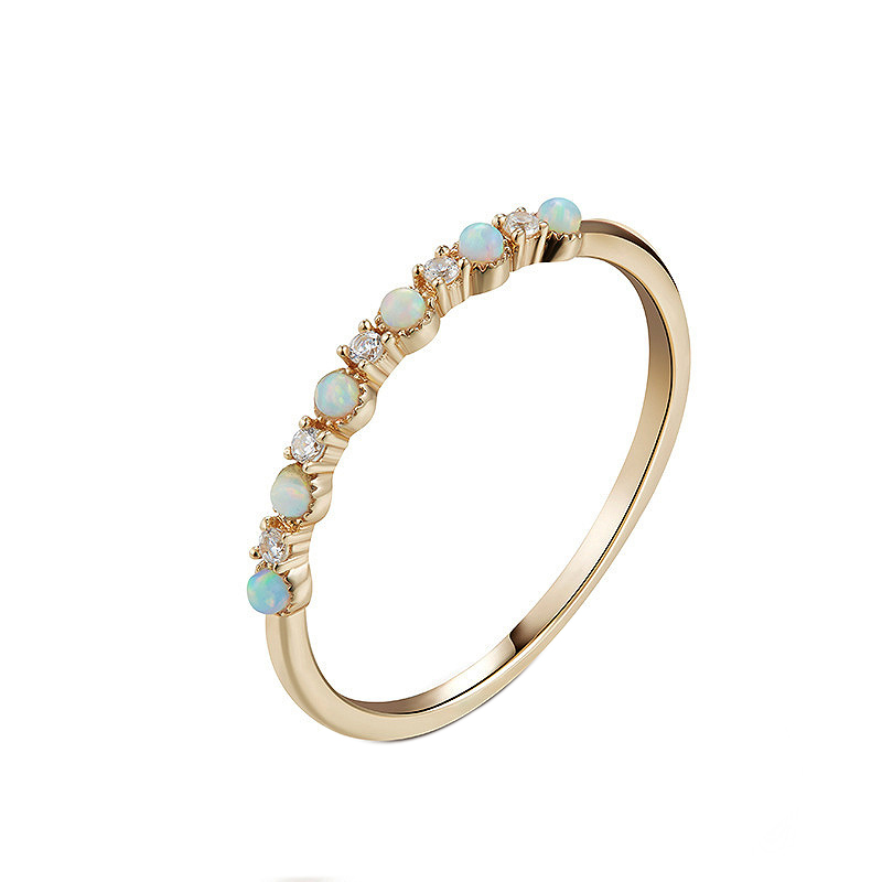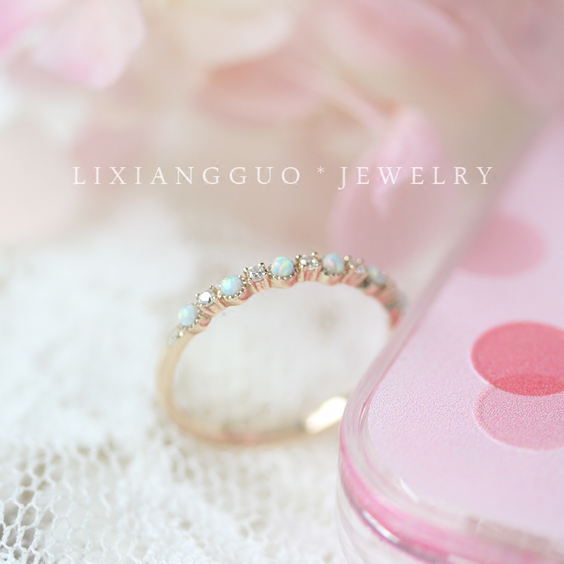 「星野」温柔小粒欧珀石S925纯银镀金欧泊戒指 日本人造幻彩Opal
