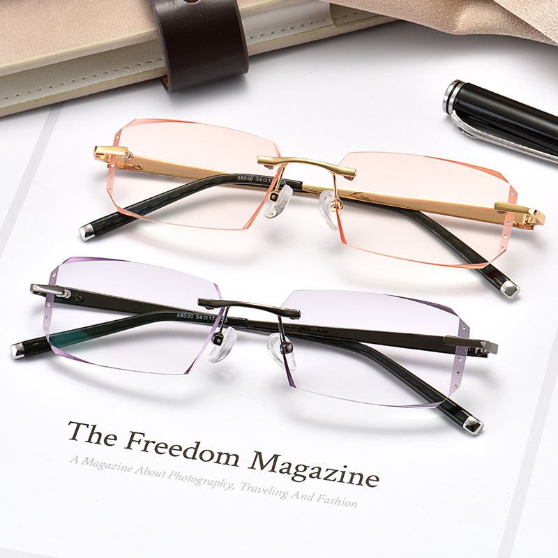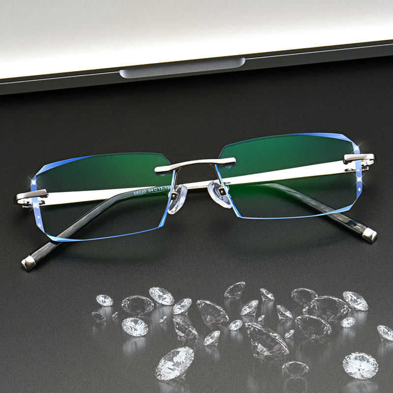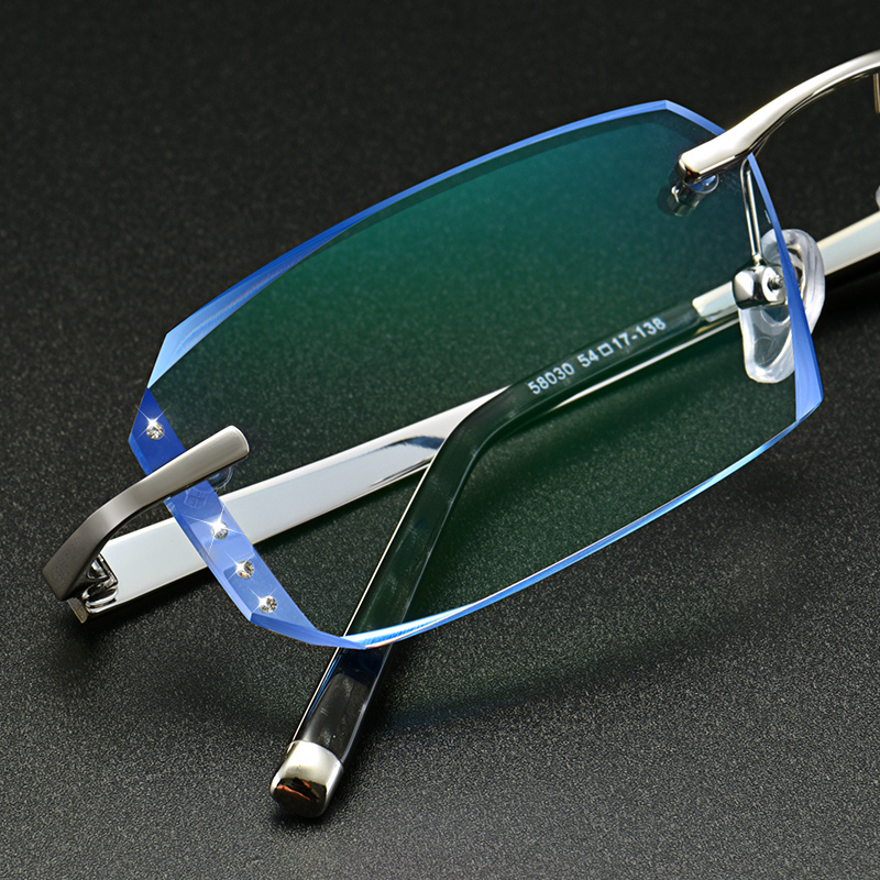 配成品近视眼镜男 钻石切边无框眼睛架平光变色丹阳防辐射眼镜女