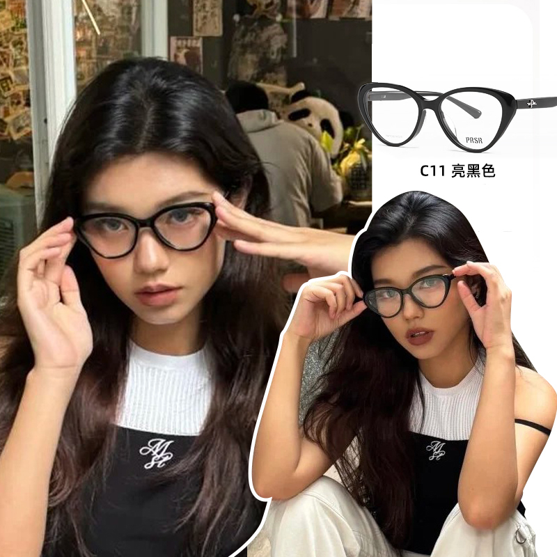 帕莎眼镜2025新款猫眼素颜小脸显瘦防蓝光复古时尚潮流大框黑色