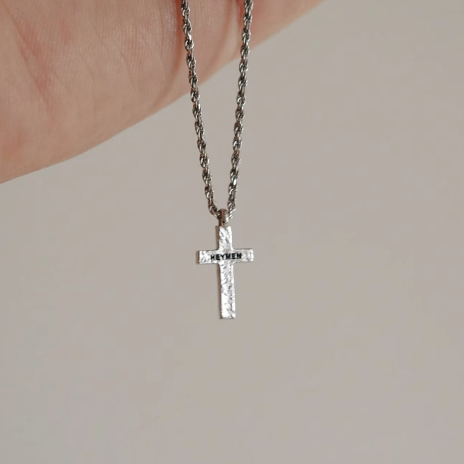 Heymen黑门 鞭伤 纯手工捶打极简男女款925银十字架项链