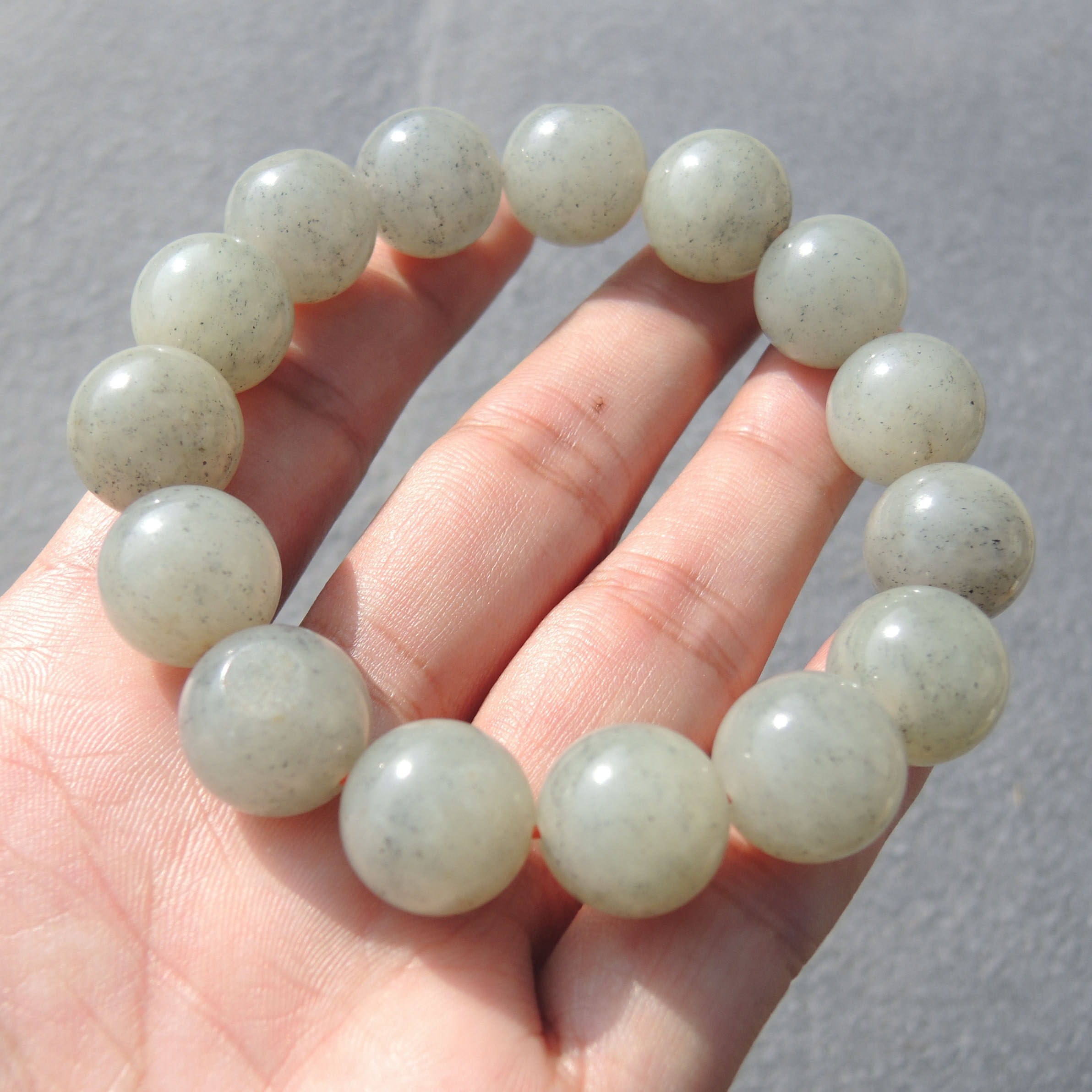 美哭了方言和田玉老熟新疆玉龙河点墨青花籽料留皮细腻15mm手串S