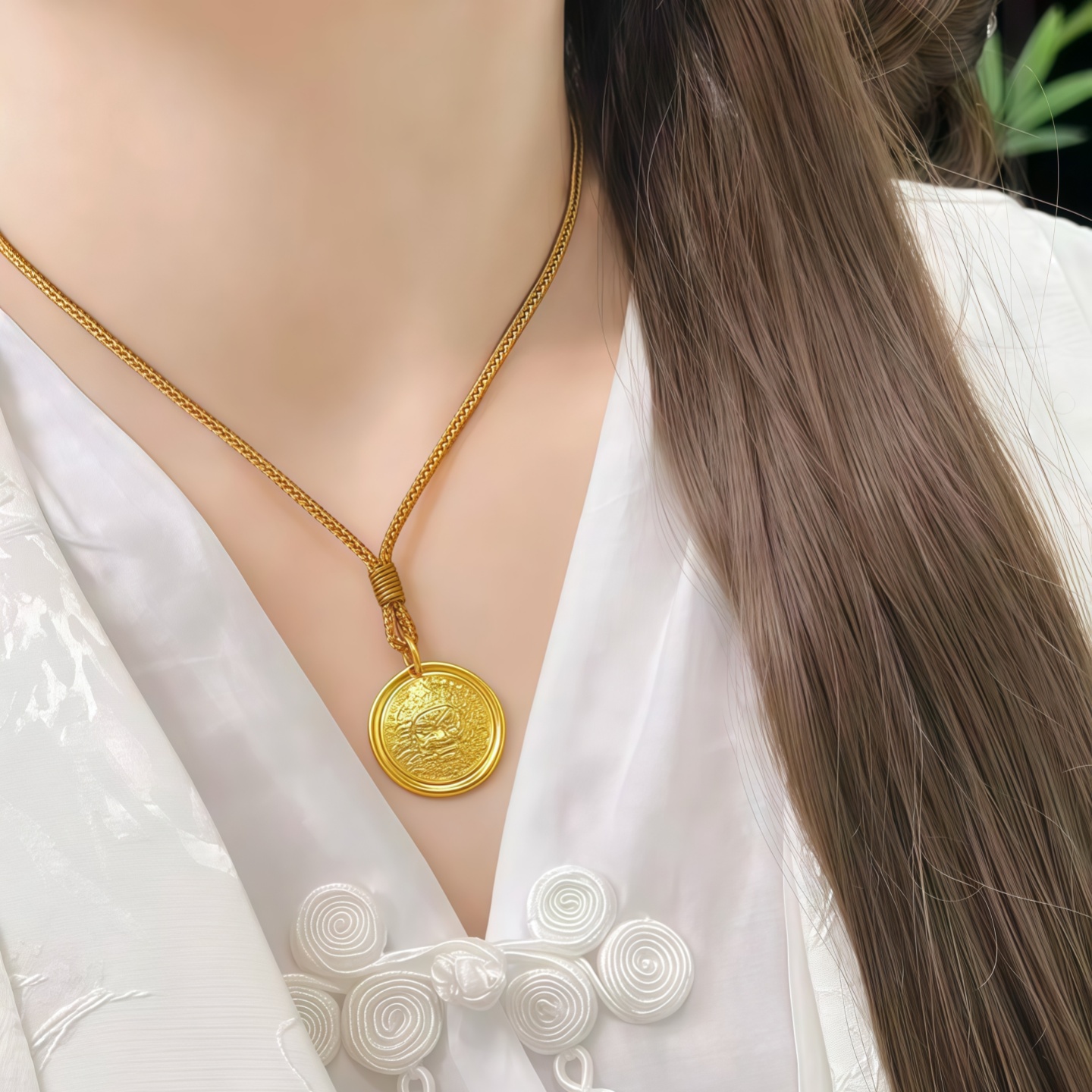 金店同款黄财神吊坠水贝古法金包银财神爷项链送女友节日生日礼物
