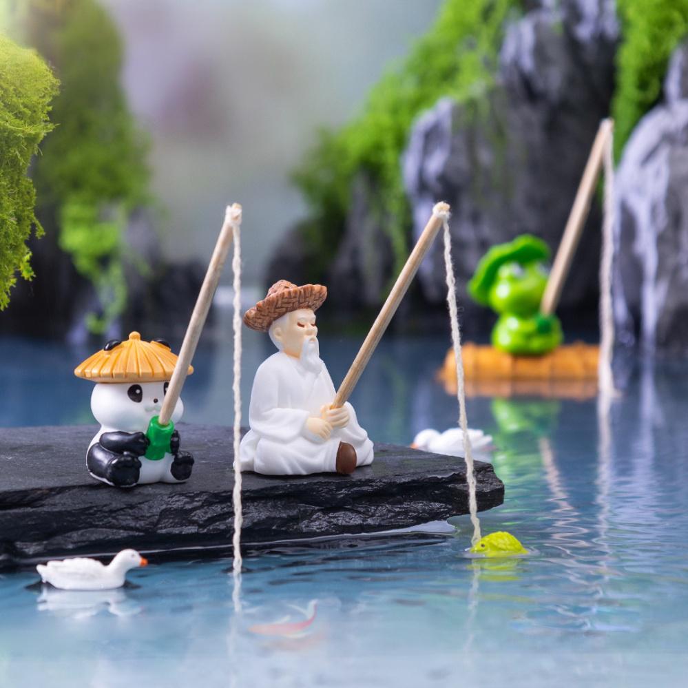 古风江湖侠客姜太公钓鱼人物模型鱼缸微景观造景桌面工位装饰摆件