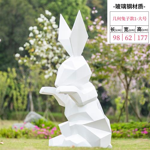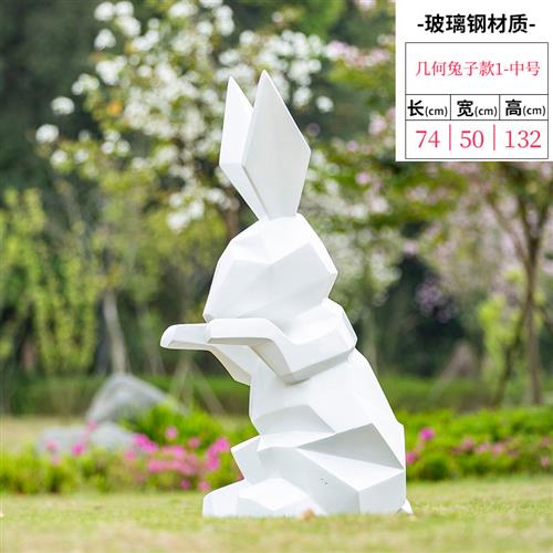 大型园林景观几何切面兔子彩虹玻璃钢雕塑景区售楼部装饰户外摆件