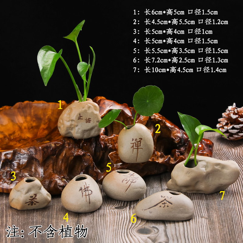 禅意茶桌陶瓷摆件茶宠仿石头装饰品茶台办公室桌面小摆设水培花器