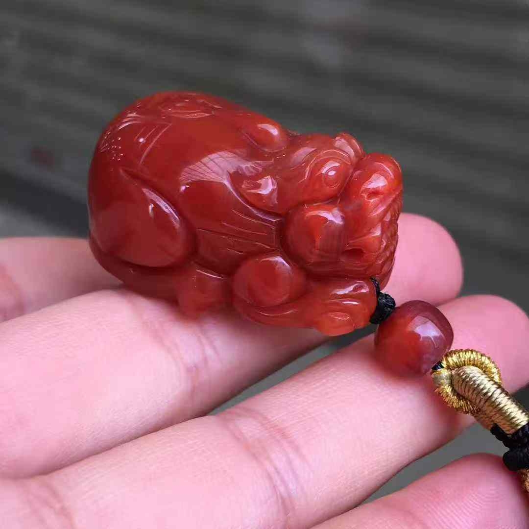 南红玛瑙貔貅吊坠挂件项链玉石收藏瓦西料玫红色满色满肉男女款