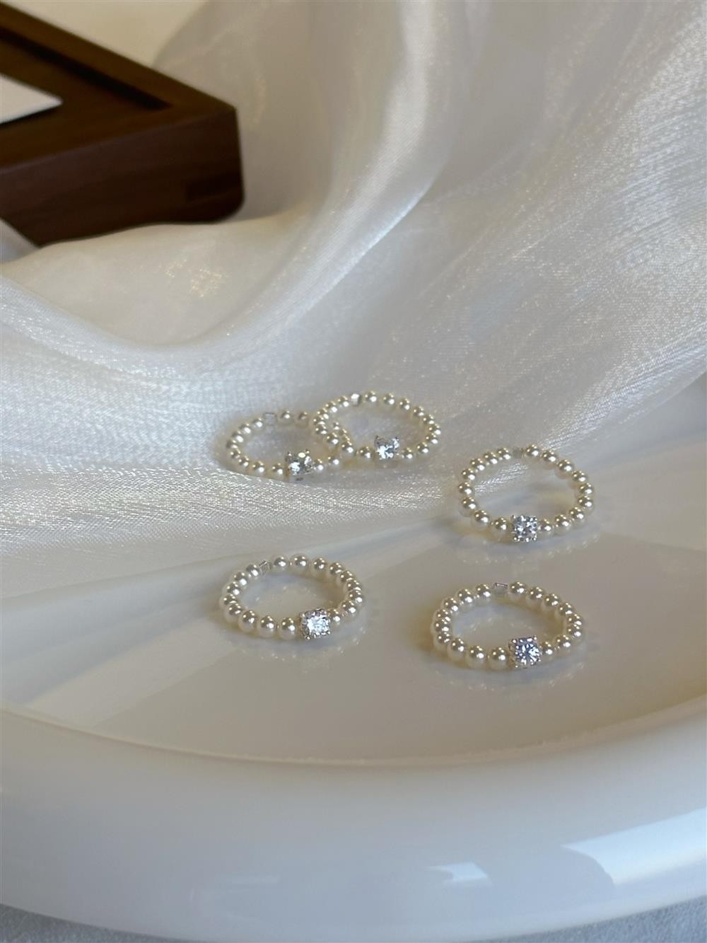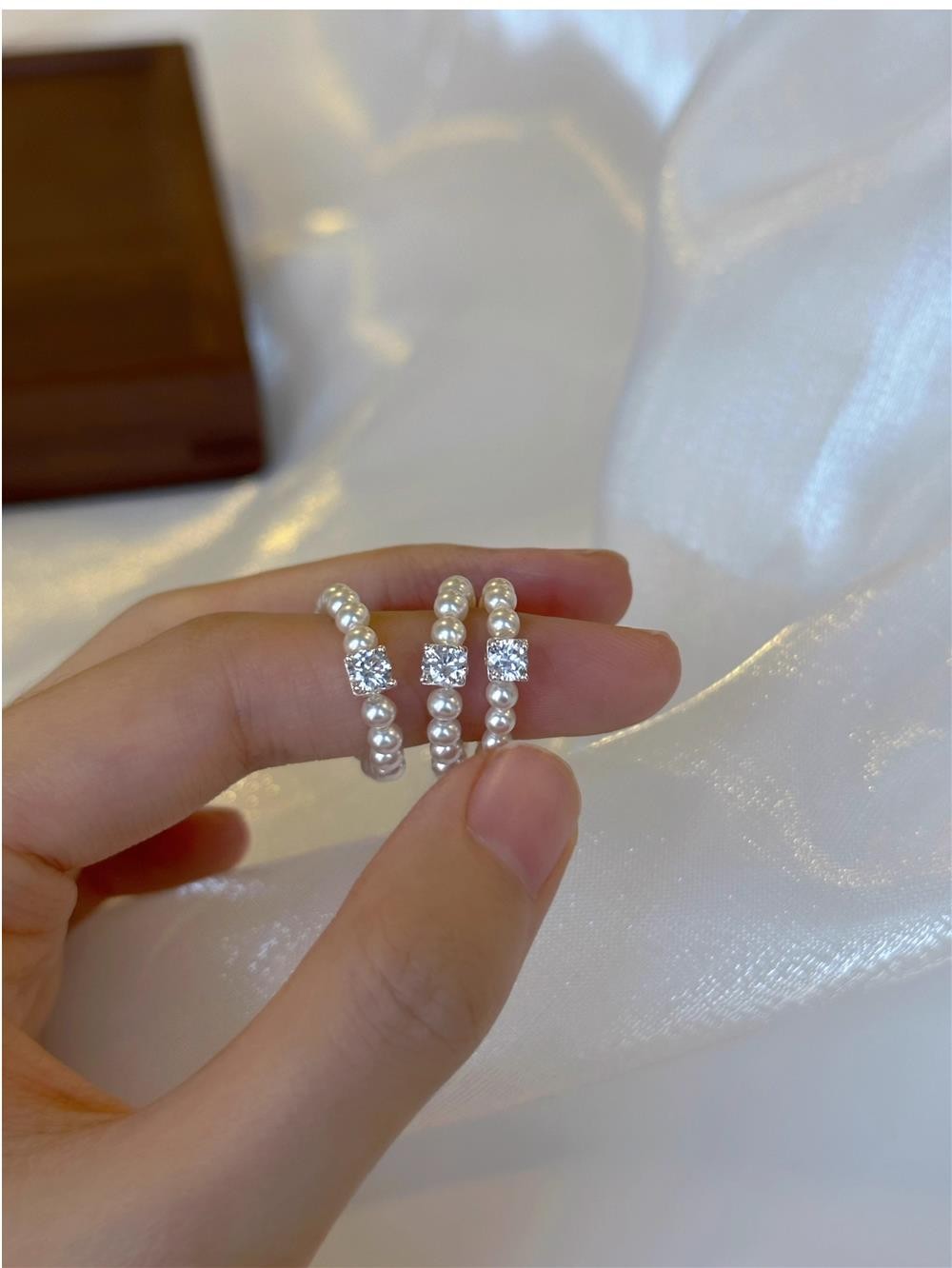 s925纯银小方糖锆石珍珠戒指女小众设计秋冬指环轻奢高级感食指戒