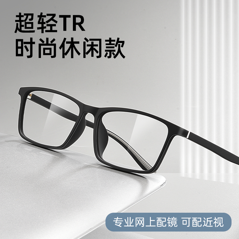 时尚超轻TR90眼镜男款近视散光专业配镜防蓝光变色黑框眼镜架全框