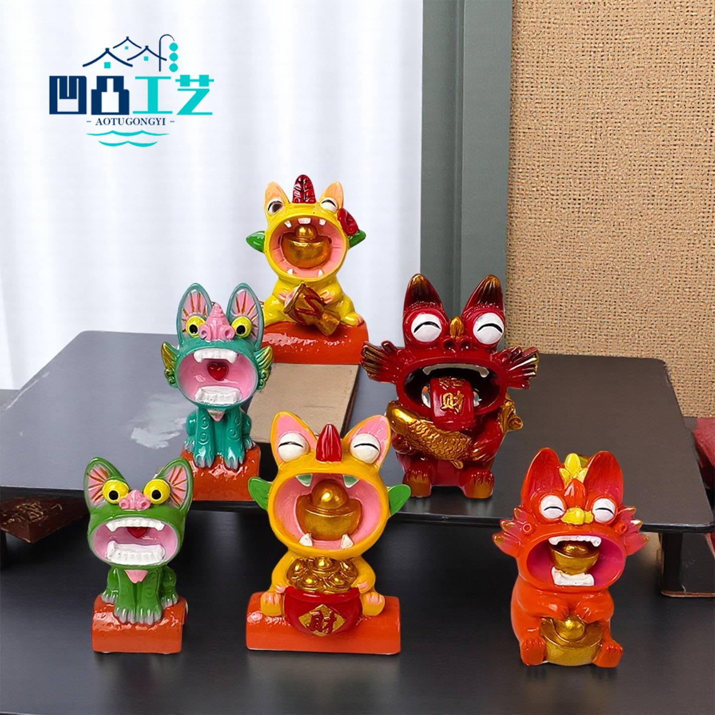 凹凸工艺云南大理旅游吉祥物招财元宝瓦猫家居装饰桌面伴手礼摆件