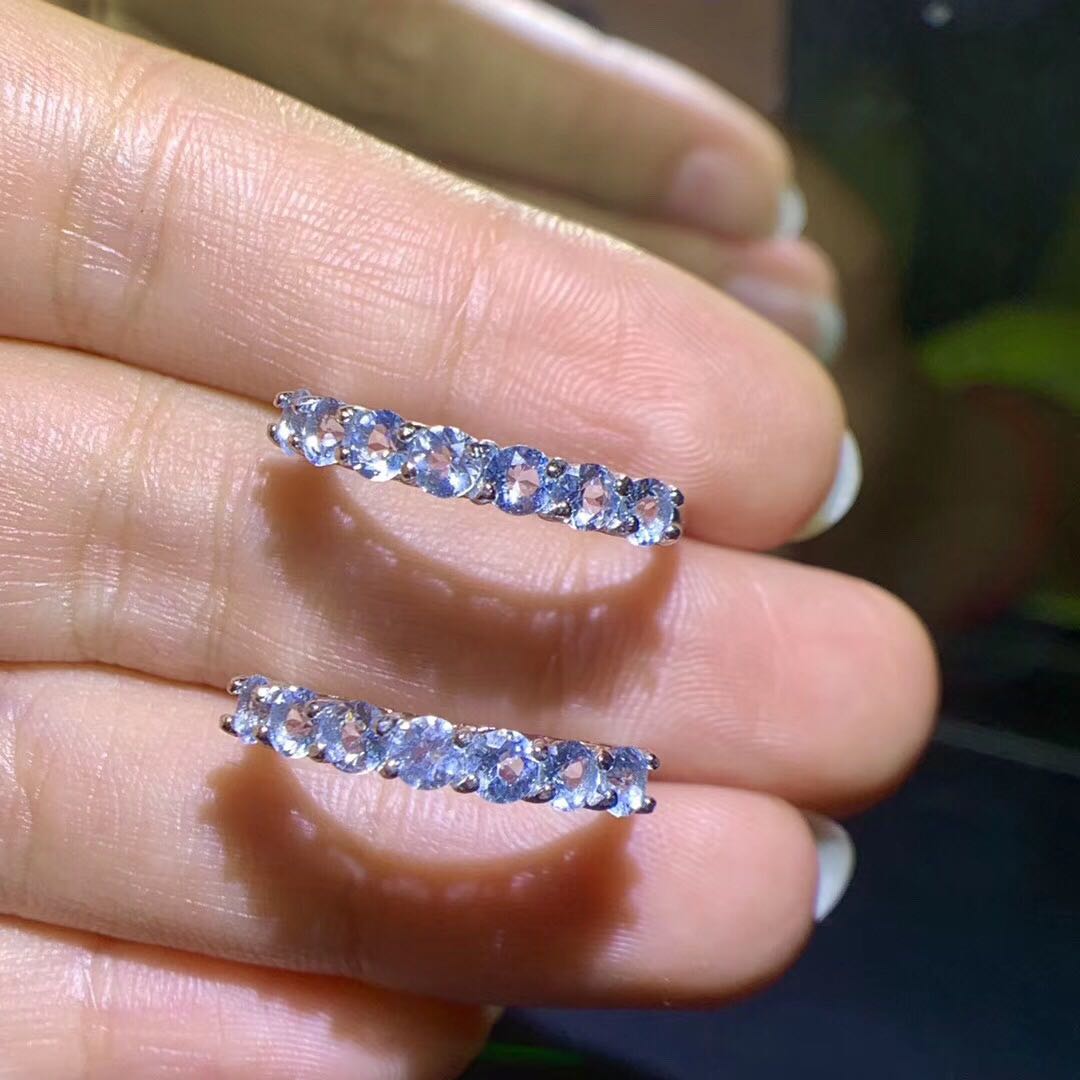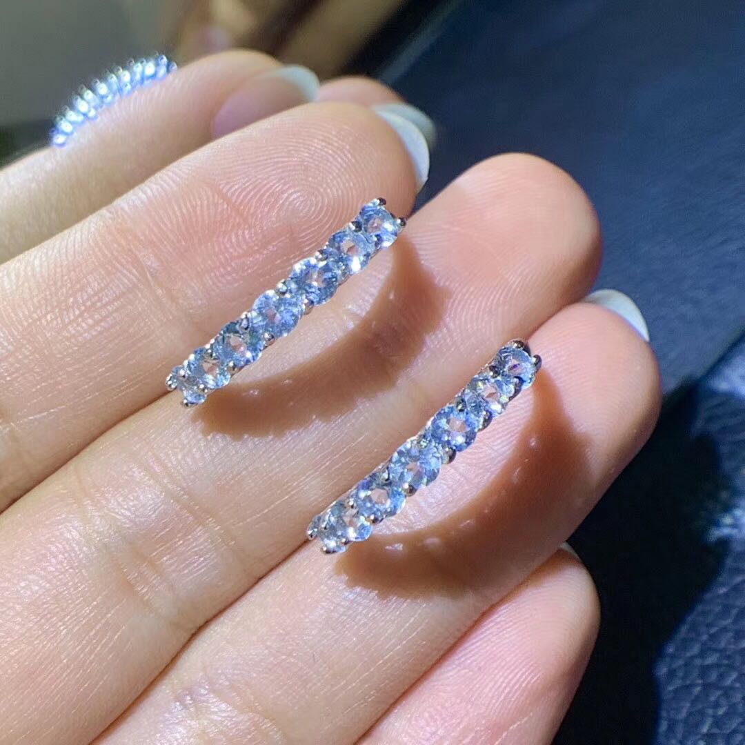 天然海蓝宝戒指 淡淡的蓝色排戒石圆3*3mm925银精工镶嵌活口设计