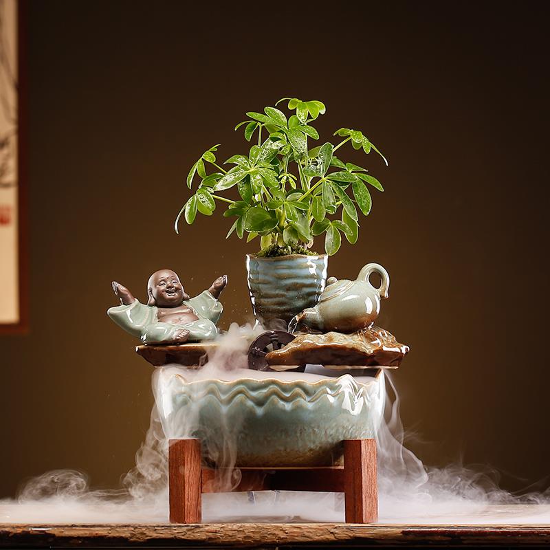 新中式招财鱼缸创意办公室客厅书房桌面陶瓷循环流水摆件乔迁礼品