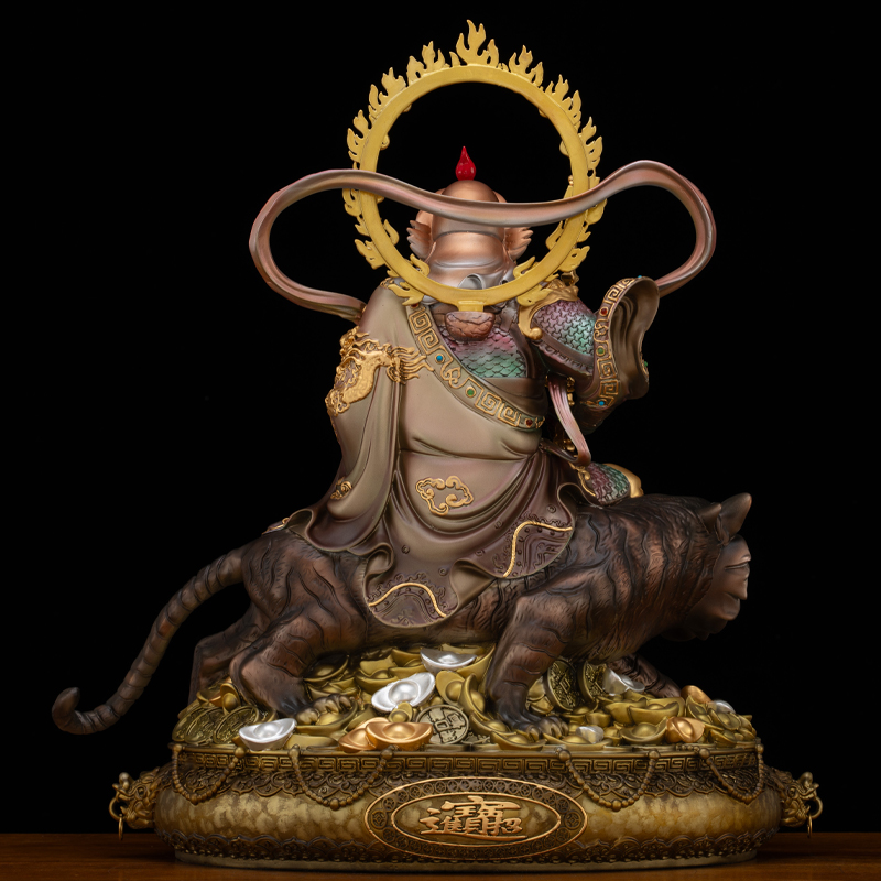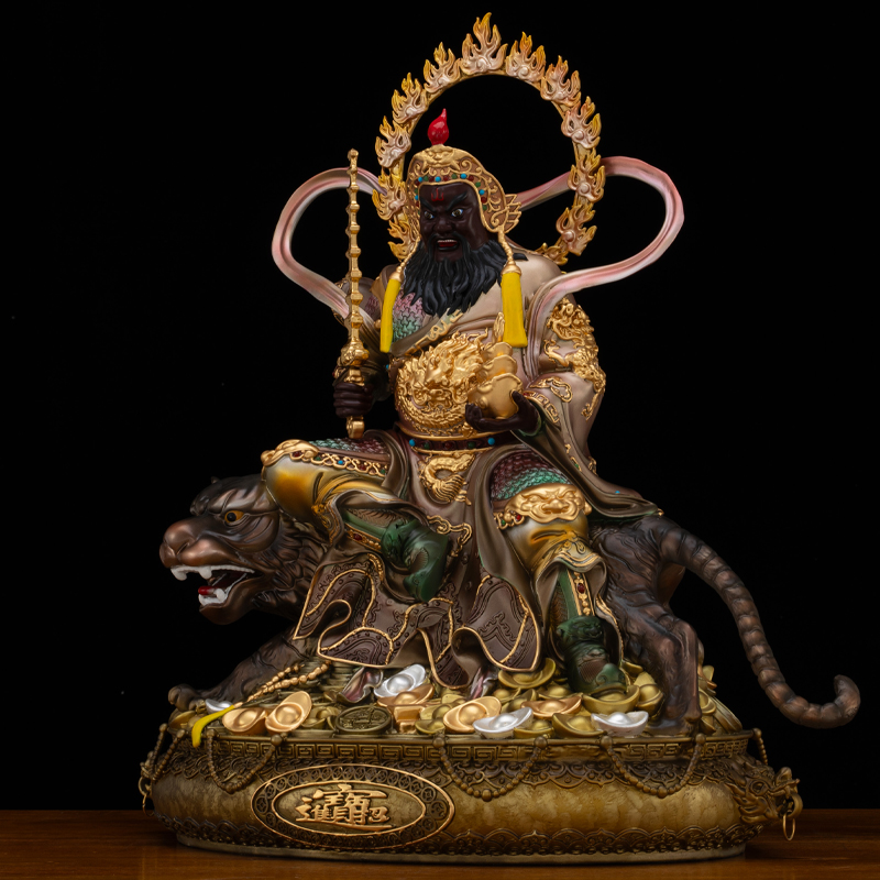 台湾纯铜赵公明骑虎像五路财神武财神赵公明神像家用供奉财神摆件