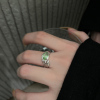 冷淡风绿色锆石纹理开口戒指女轻奢小众设计高级感个性时尚食指戒