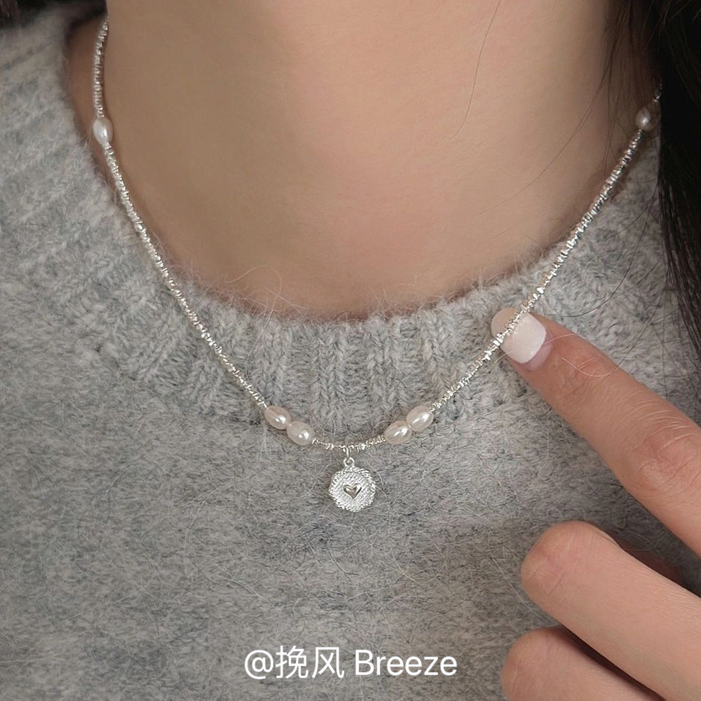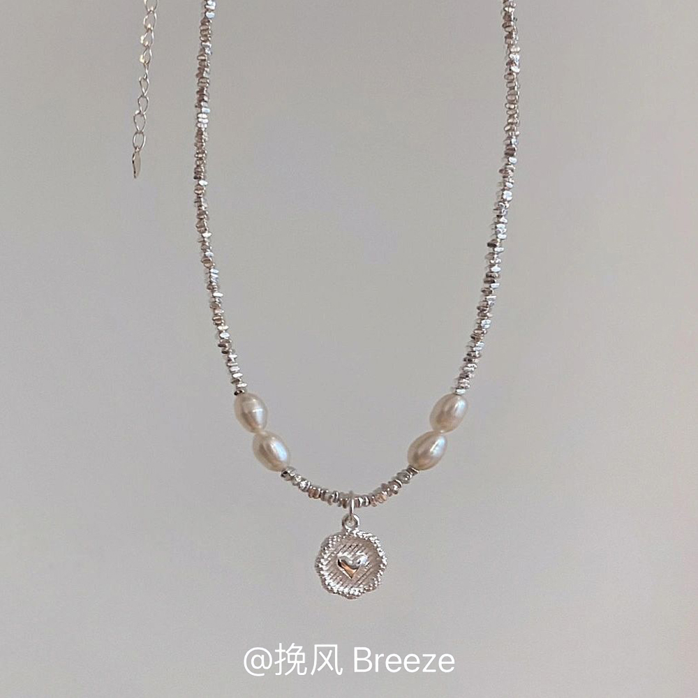 925纯银碎银珍珠项链女款轻奢小众设计高级感锁骨链2023新款爆款