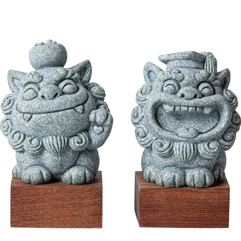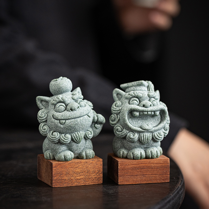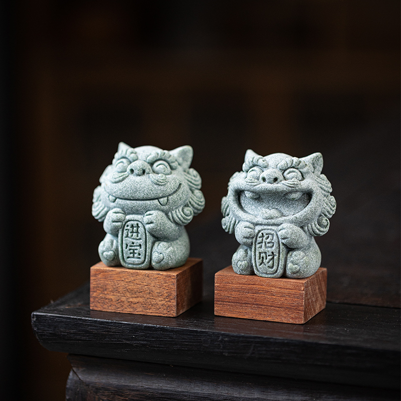 新中式可爱小狮子茶宠摆件创意招财进宝博才带底座客厅桌面装饰品
