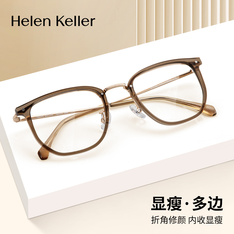 海伦凯勒近视眼镜素颜茶色显白文艺时尚钛架轻可配度数眼镜H9604