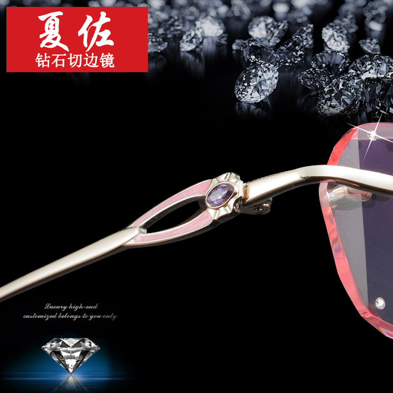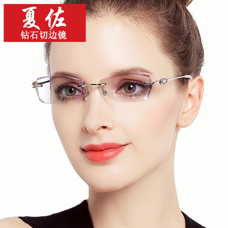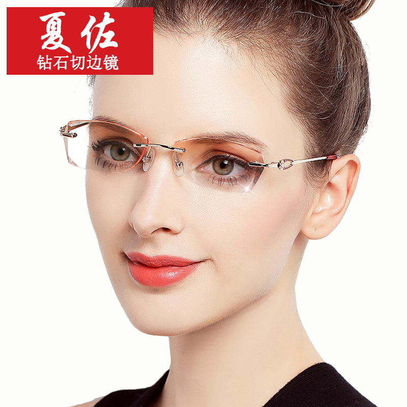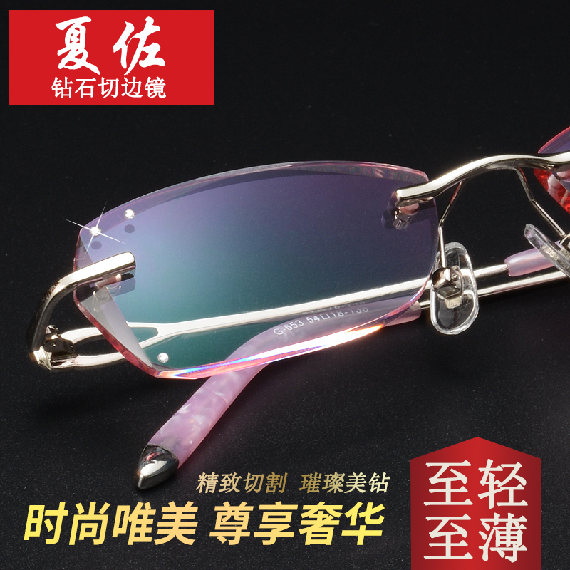 气质女无框钻石切边镶钻眼镜框配成品近视高度超薄渐变色眼镜B023