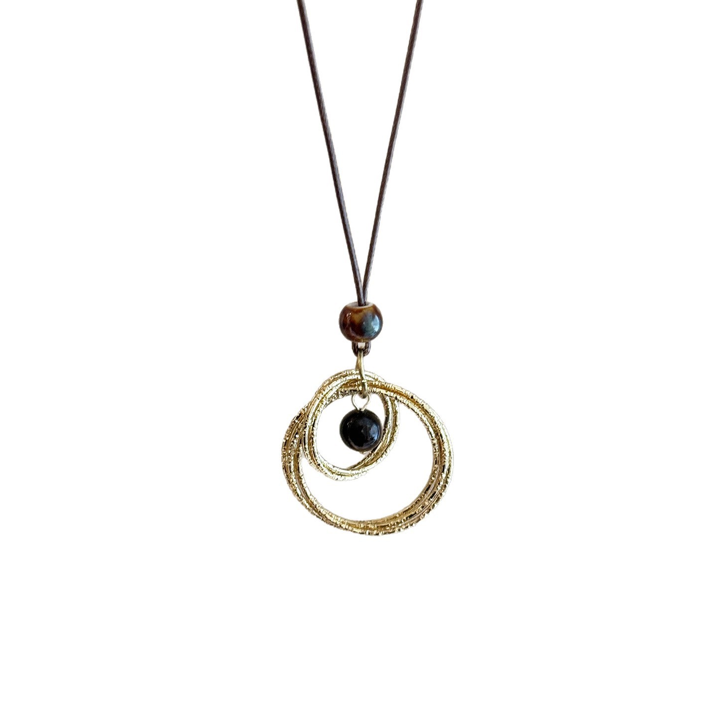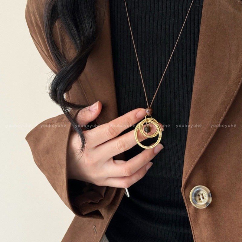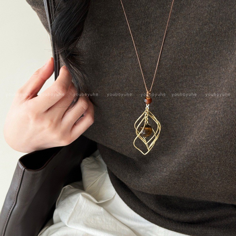 进口美拉德金色虎眼石长款吊坠项链女款轻奢高级感毛衣链复古装饰