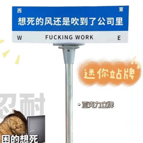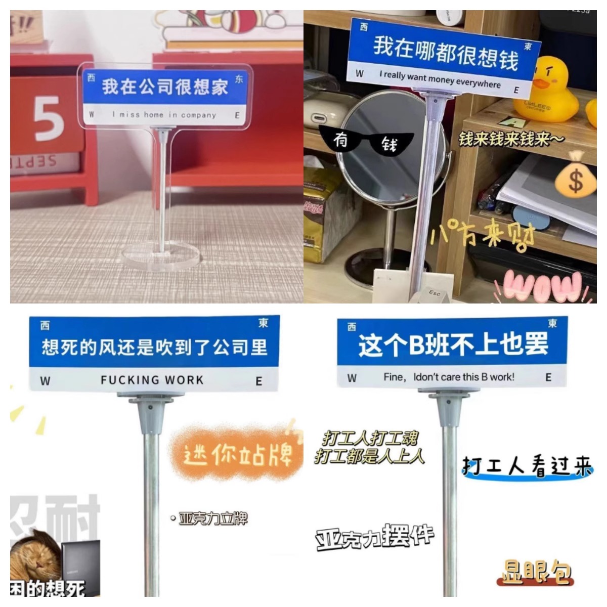 创意当代发疯文学立牌小红书打工人桌面摆件送朋友路牌亚克力立牌