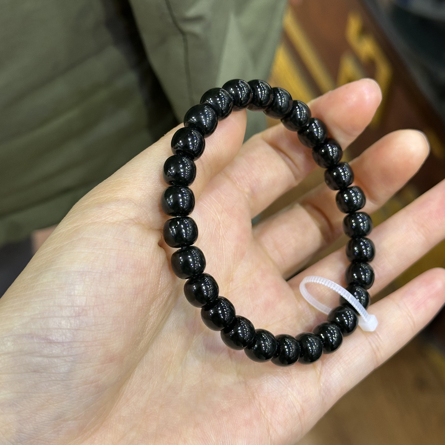 好油润方言和田玉精品佩戴温润新疆黑青籽料8mm老型珠手串手链O