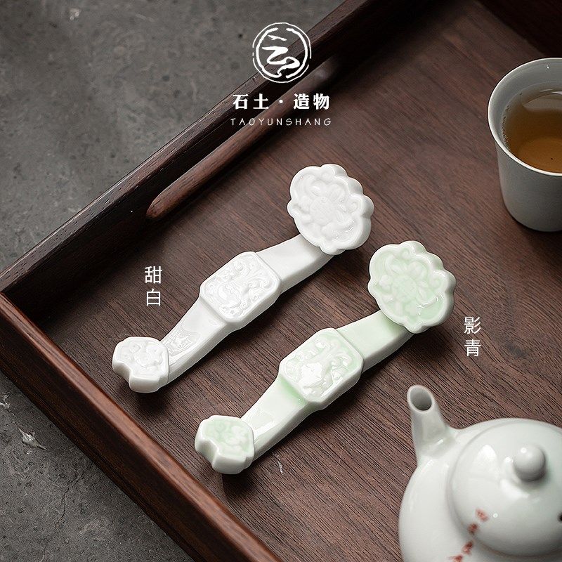 陶云尚 创意白瓷如意摆件茶道笔架笔托精品家居摆设茶桌摆件配件