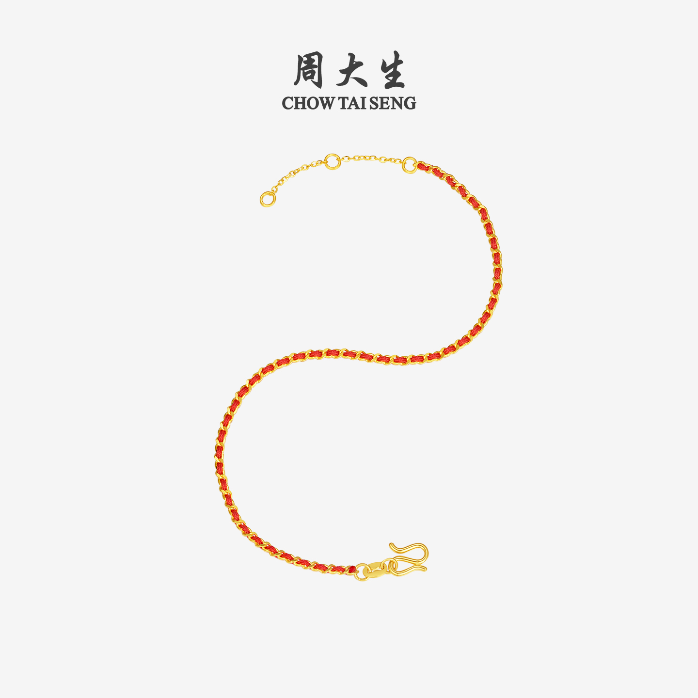 周大生新年红绳黄金手链女5G足金编织手绳素链手饰本命年送女友礼
