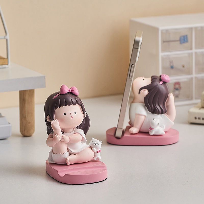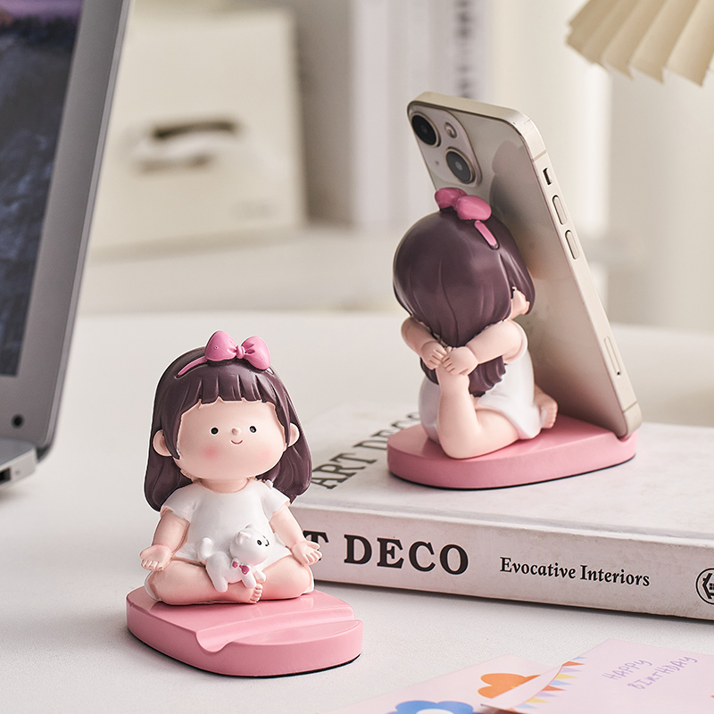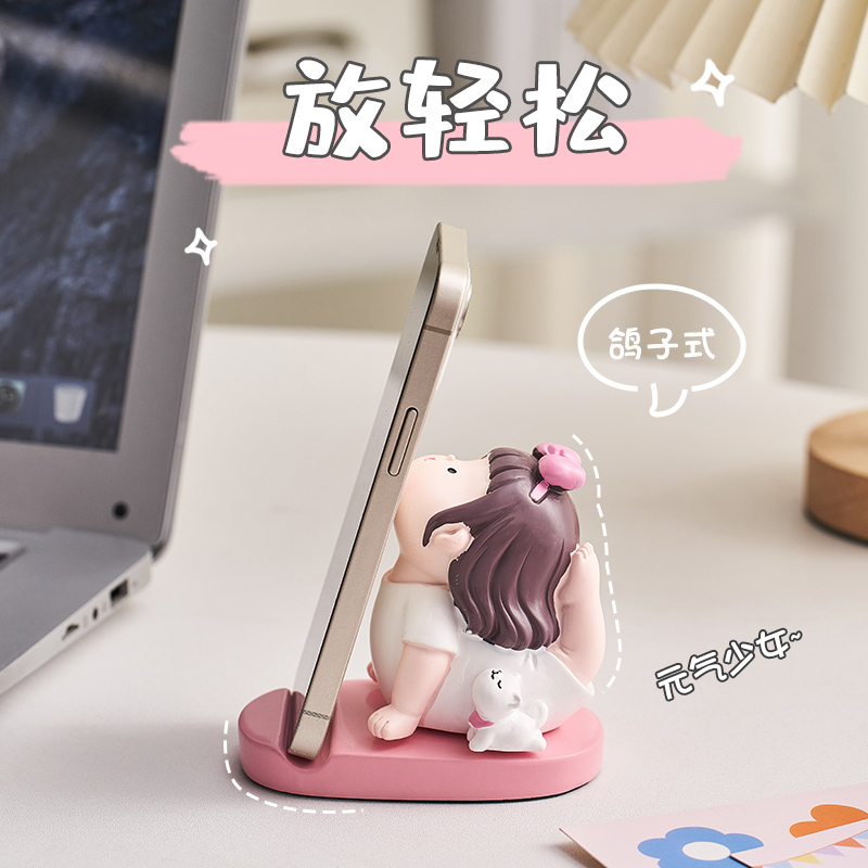 瑜伽女孩桌面手机支架可爱女生工位摆件办公桌装饰解压治愈小礼物