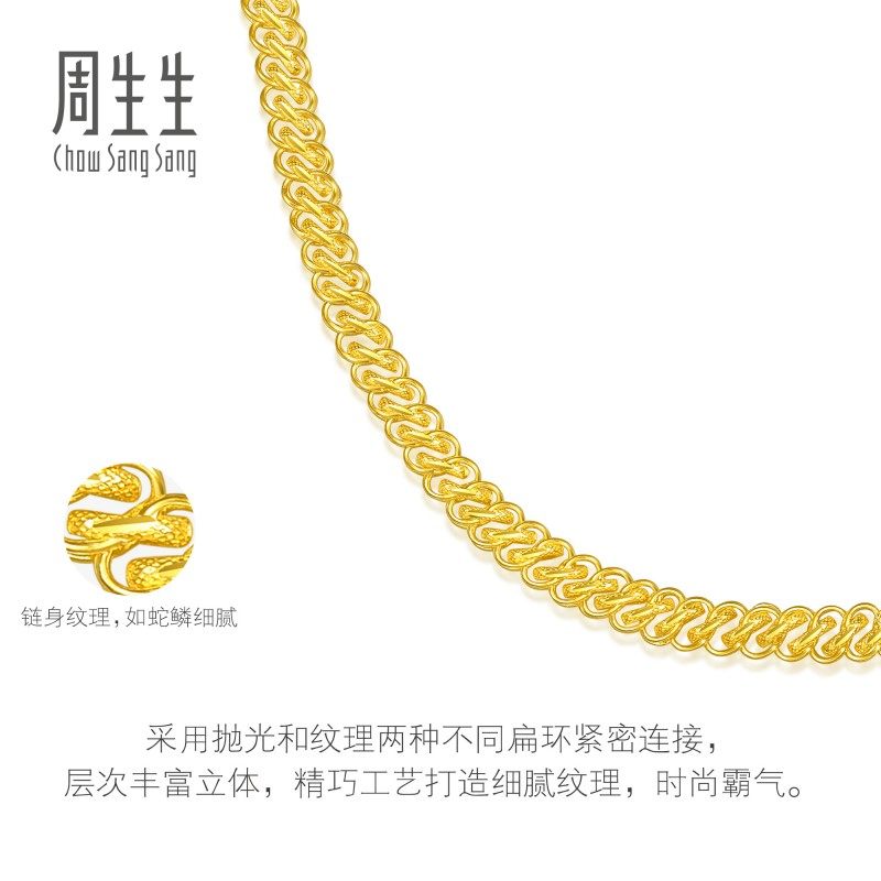 圣诞周生生Essence永爆闪足金扁泰双扣黄金项链男士颈链95976N