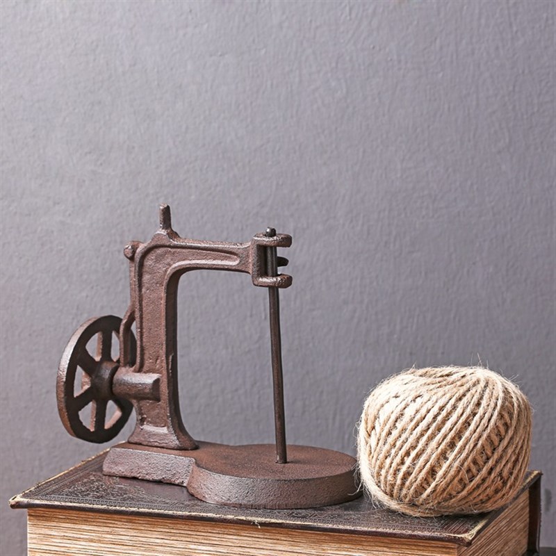 怀旧复古乡村老式缝纫机铁艺模型摆件服饰P店摆设含麻绳收纳架