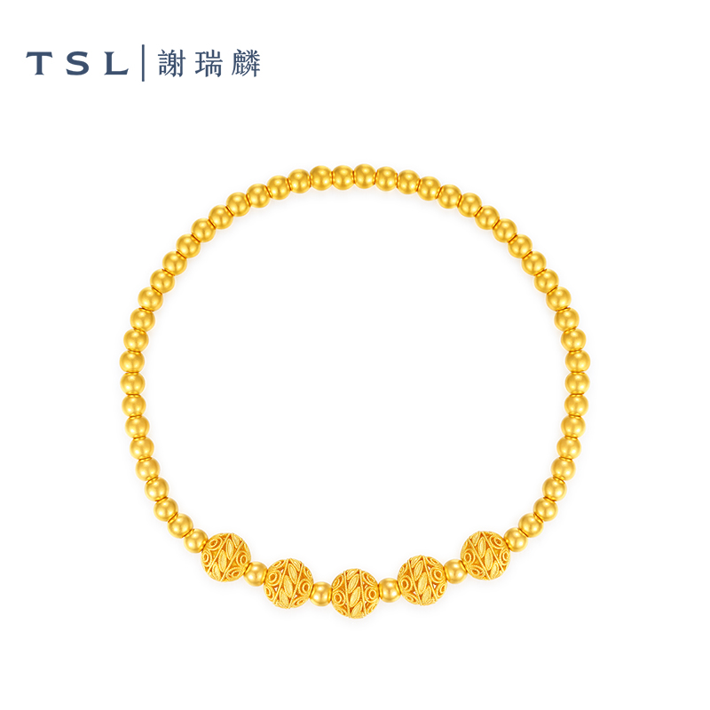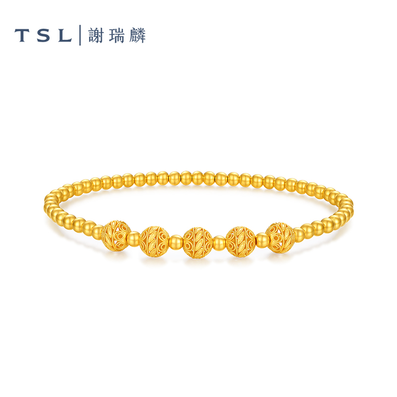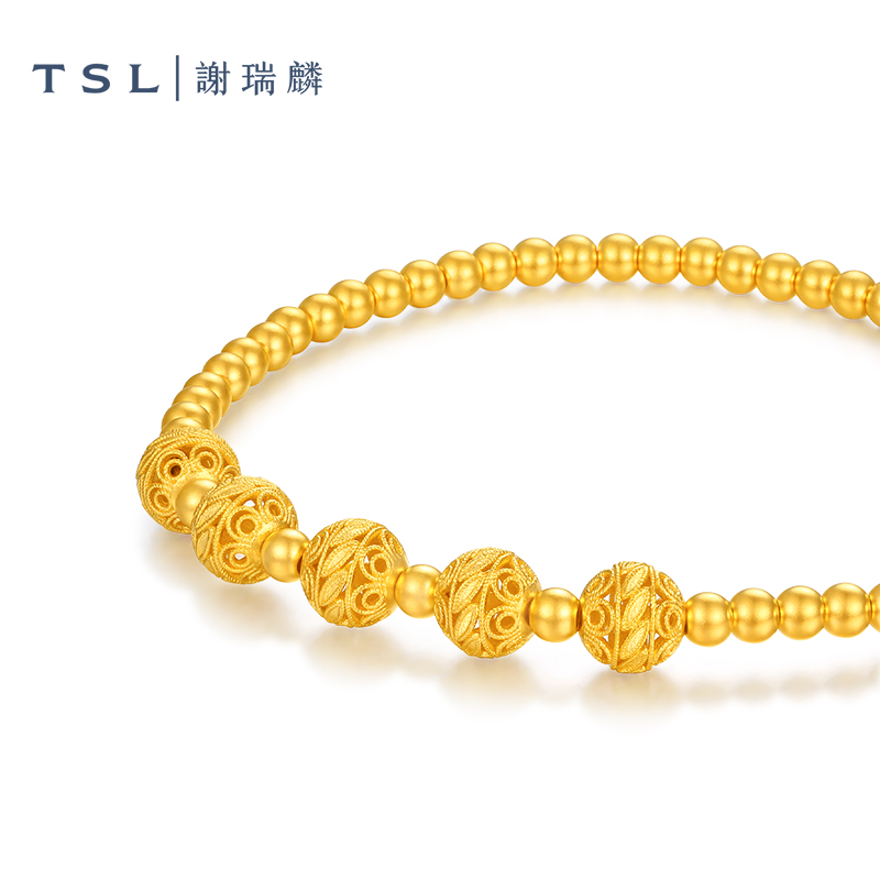 TSL谢瑞麟黄金花丝球手链古法金足金金珠手串新品计价黄金XQ693