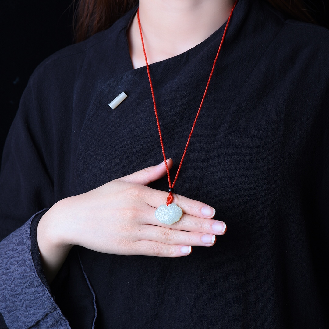 新疆和田玉羊脂玉白玉青白玉如意平安锁吊坠男女士款挂件玉坠玉佩