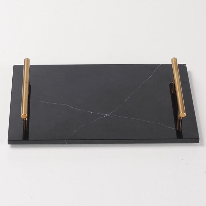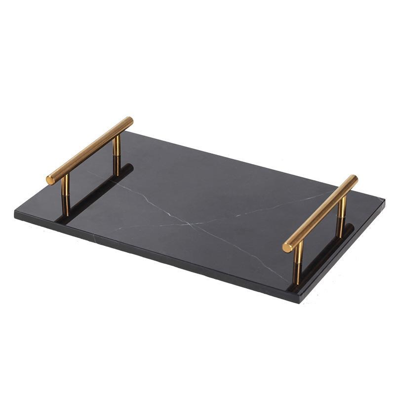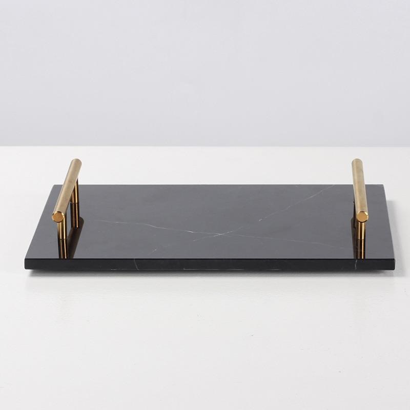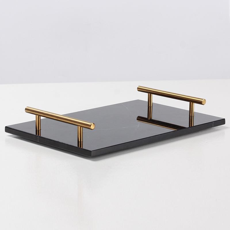 新中式大理石黑白色托盘s长方形样板间玄关客厅大堂轻奢收纳盘摆